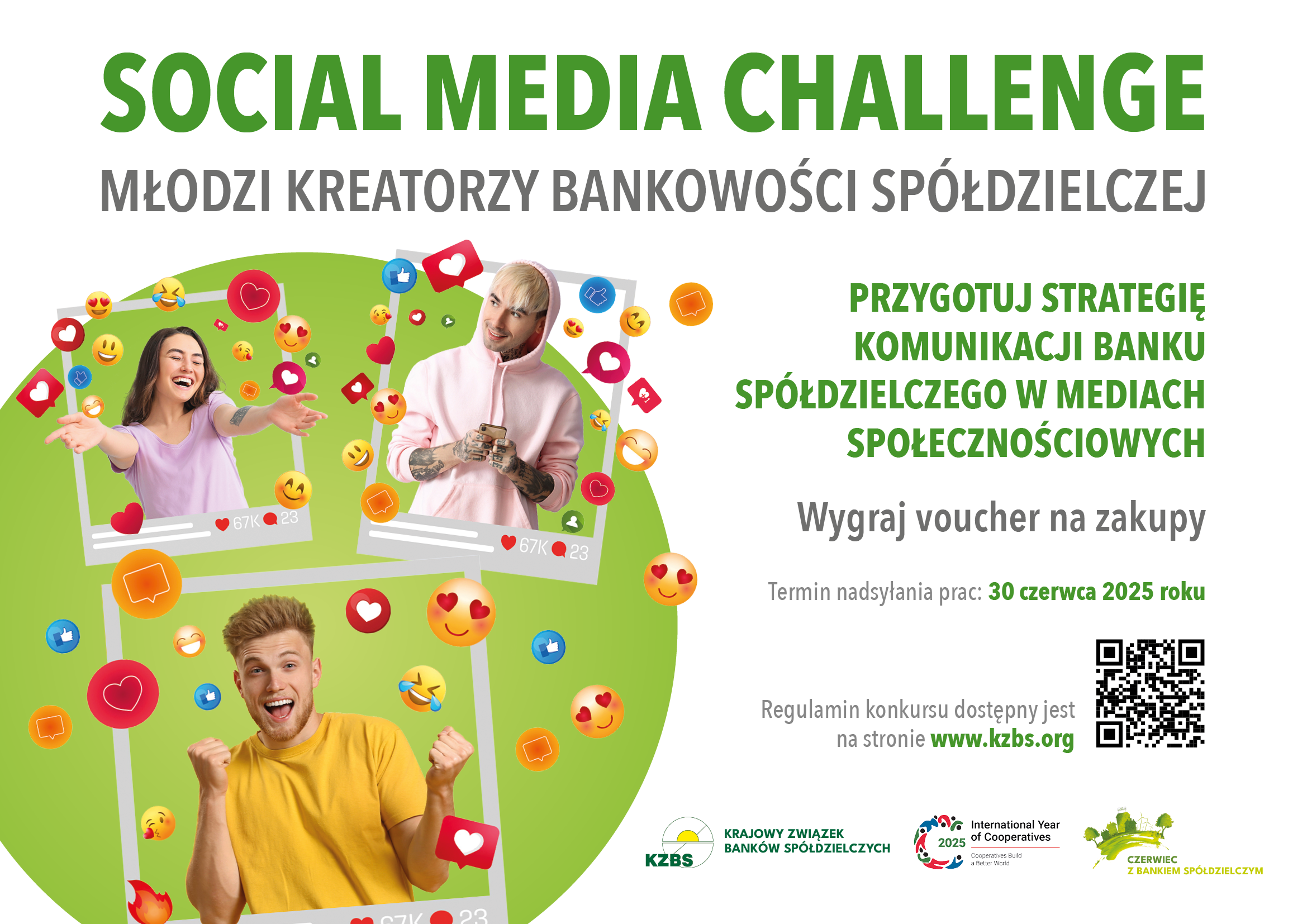 Jeśli jesteś w wieku 14–19 lat, lubisz social media i masz pomysł, jak pokazać bankowość spółdzielczą w nowoczesnym, cringe-free stylu – to ten konkurs jest dla Ciebie!