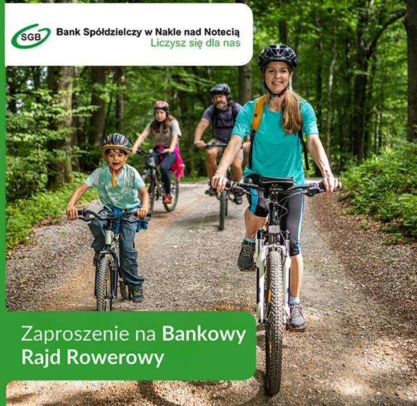 Jesteś Udziałowcem Banku Spółdzielczego w Nakle nad Notecią? Lubisz spędzać czas aktywnie? Dołącz do Bankowego Rajdu Rowerowego! Akcja skierowana jest do Udziałowców wraz z rodzinami.